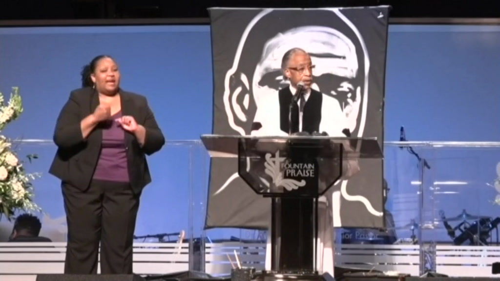 The service at fountain of praise church featured multiple speakers, including civil rights.